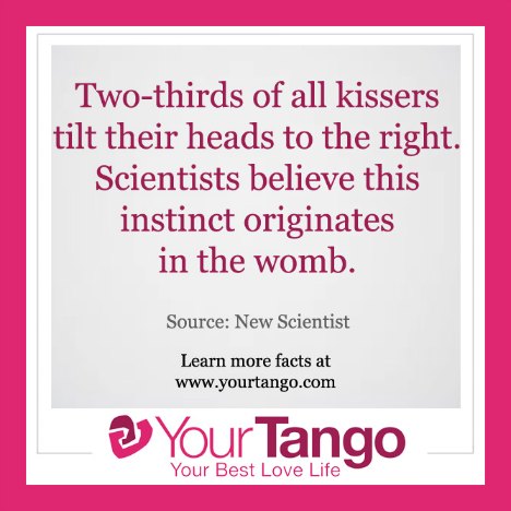 See a kiss in any Hollywood movie, painting or sculpture and more often than not, you'll seecouples leaning in to the right. Why is that? A German researcherobserved over 100 couples and noted that two-thirds of them tilted their heads to the right. The scientific community at large theorizes that this instinct originates from the womb when we naturally tilted our heads to the right.